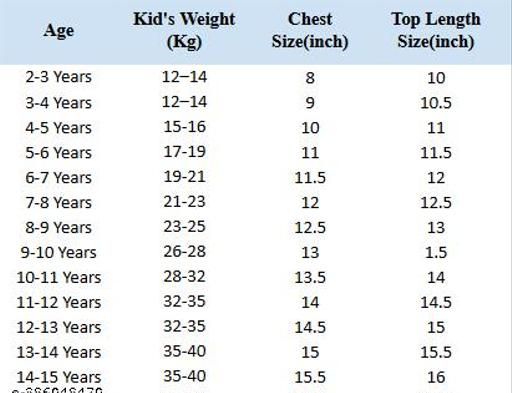 2-3 Years (Chest Size: 12 in, Length Size: 17 in)