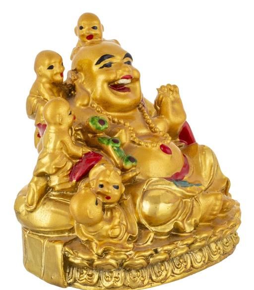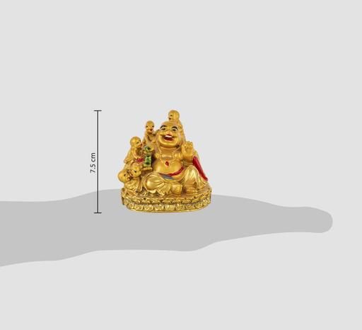 Name: Laughing Buddha with 5 Children for Good Luck Showpiece Protection Statues for Home Office Dcor Bookshelf Desktop Brings and Health Meditation Dcor (Resin, Gold)