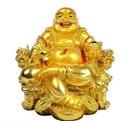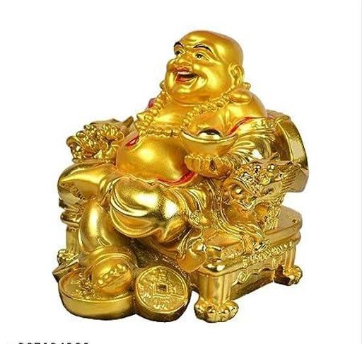 Name: Feng Shui Laughing Buddha Happy Man for Happiness and Money Wealth Sitting on Chair, Golden