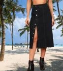 BUTTON SIDE SPLIT DENIM LONG STATE SKIRT FOR WOMEN & GIRLS