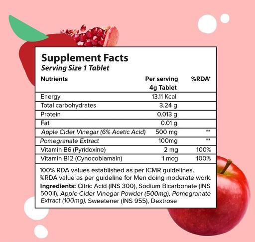 Name: Apple Cider Vinegar Effervescent Tablets with the Mother, 500mg ACV with Vit B12, B6, Pack of 1 |Vegan, No Added Sugar, non-GMO & Gluten-Free
