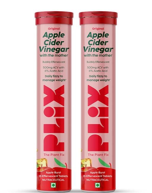 - THE PLANT FIX Apple Cider Vinegar Effervescent Tablet with mother for weight loss I with vitamin B6 & B12 | Pack of 2 (Apple), 30 tablets | 100% vegan | No added Sugar |Easy to carry & consume