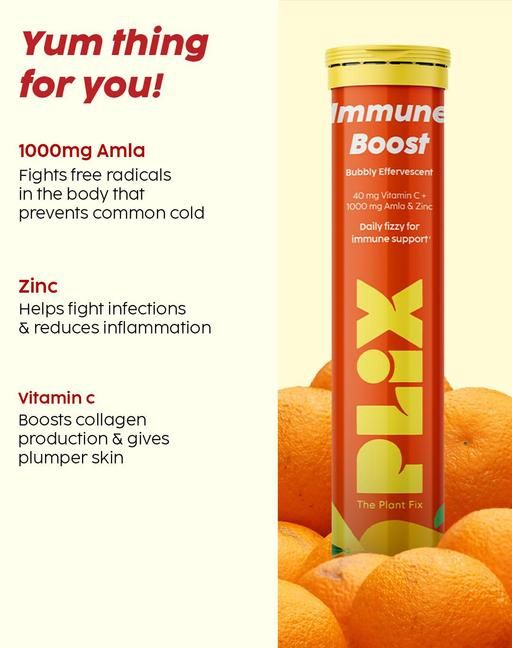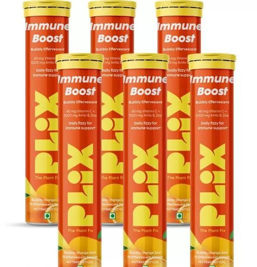 - THE PLANT FIX Vitamin C Immunity Booster 15 Effervescent Tablets|Pack Of 6 (Orange Flavour)|Contains Amla And Zinc|Helps Improve Mood|Increases Energy Levels|Gluten-Free|Non-Gmo|Vegan
