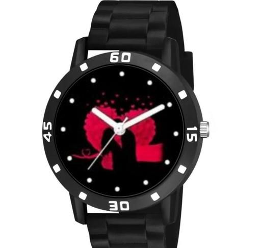 HRV Love Couple Heart Print Dial Bumpper Pu Black Belt Men and Boy Watch