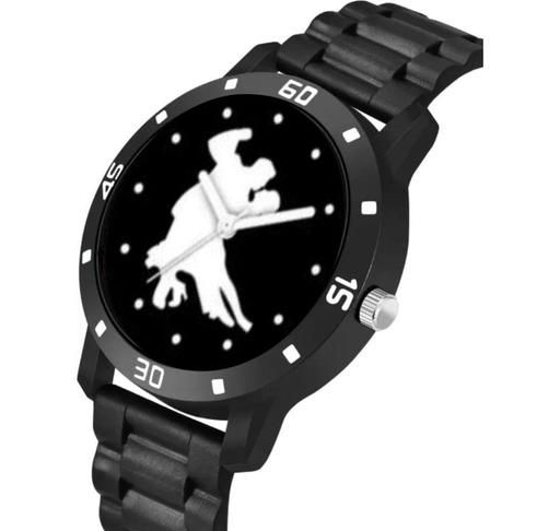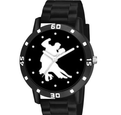 HRV Love Couple Dance Print Dial Bumpper Pu Black Belt Men and Boy Watch