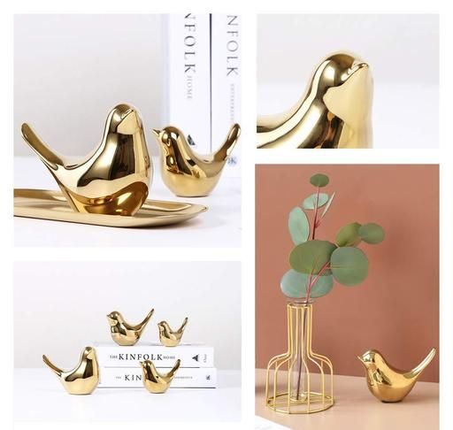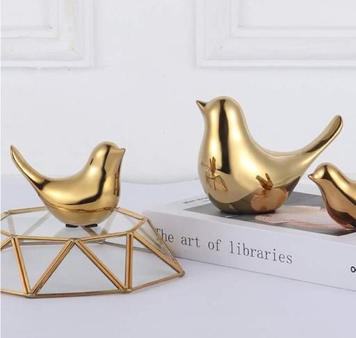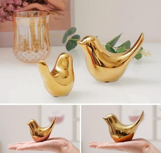 Name: Ceramic Golden Blessing Birds Figurine for Home Decor | Living Room, Bedroom, Office Desk, Cabinets -(Pack of 2 Pcs Bird),
