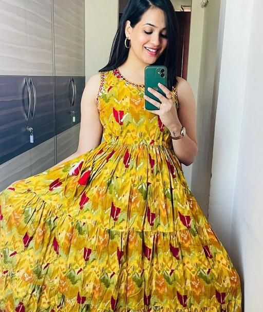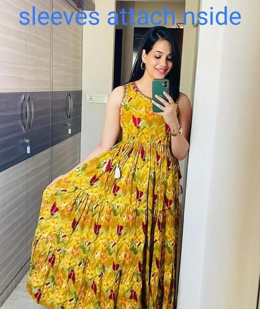 Women New Anarkali Floral Full Kurti Gown Kurti for Women's & Girl's - Yellow |yellow kurti, Tiered kurti,Sequence kurti,printed kurti, Multicolour kurti, For Woomen kurti kurta, kurti for women, Sleeveless kurti, Mirror Work kurti, yellow kurtis, embroidery kurtis country of Origin : lndia