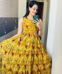 Women New Anarkali Floral Full Kurti Gown Kurti for Women's & Girl's - Yellow