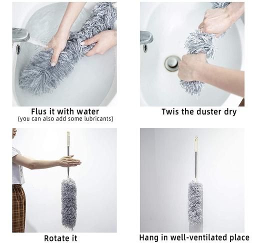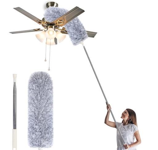 The head can bend at multiple angles for effective dusting; perfect for Aing ceiling fans, including hard-to-A areas with our fan duster for ceiling fans with a long handleThe duster is suitable for Aing dust in cars, computers, air conditioning units, TVs, and other household appliances. You can also use it to A the dust from sofas, tables, cabinets, and more.The duster is made of high-quality microfiber material that is washable, soft, and durable. The non-scratchy design As safe and enjoyable Aing.