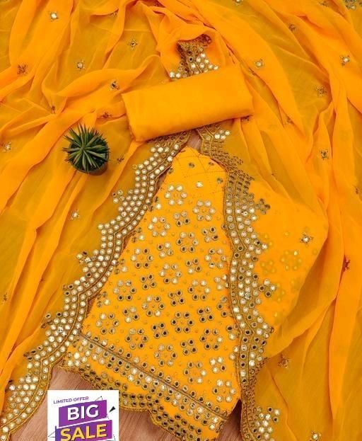 Georgette Tikli Trending Georgette Suits top work fancy duppata work exclusive chudidar salwarr kameez fashion womens party wear wedding wear all occasions wear trending womens salwar suit & dress materials unstiched georgette pakistani style embroidered suits Georgette trending Pakistani Embroidered unstiched Multicolour womens suits Exclusive Women's Unstiched Fancy Multi colour Georgette Pakistani Womens Salwar Suit & Dress Materials Georgette salwar suit is an Indian traditional dress worn by women. It is a lightweight cotton blouse with a matching skirt. The georgette fabric gives it a dainty and feminine look, while the Salwar kameez's comfortable fit helps you to move around easily. To choose a good georgette salwar suit, you first need to consider the fabric quality is very best super look georgette suits Heavy Fancy Top Work And Fancy Duppata Sequence Work With Latkans Garara Suit , Party Wear Suit , Best Deal Suit , New Arrivals , Work Wear Suit , Fresh Collection , Sharara Suit , Engagement Womens Suit , Sangeet Womens Suit , Wedding Womens Suit , Daily Wear Suit , HaldiFunction Wear Suits All Occastions Wear Suit Georgette Pakistani Mirror Work Trending Party Wear Embroidered Salwar Suits & Dress materials