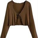 Name: Long Sleeve Rib Knit Tie Front Cropped Cardigan TOP