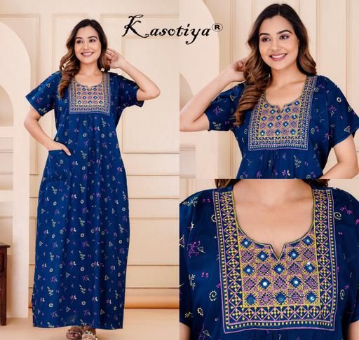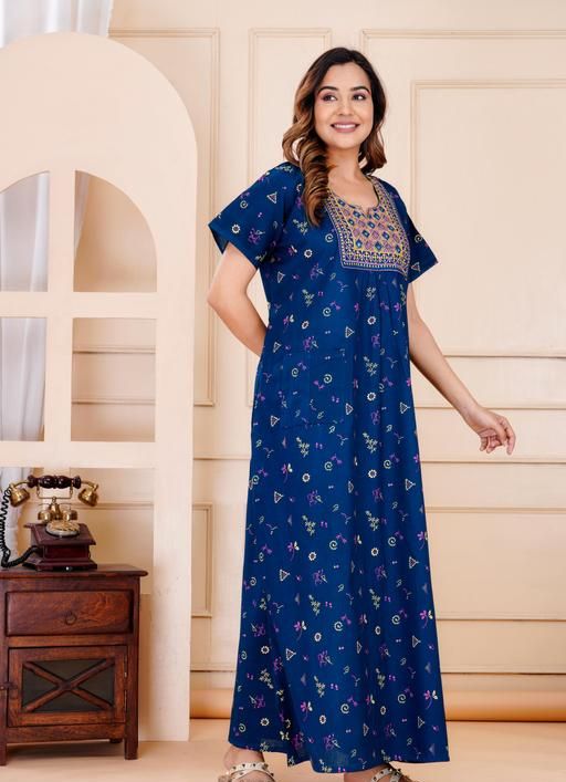 Women Premium quality cotton Emboidery nighty, Cotton Nighty short sleeve, Printed maxi, Nightdress, Nighty, Maxi, Gown, Sleepwear, Ladies nighty