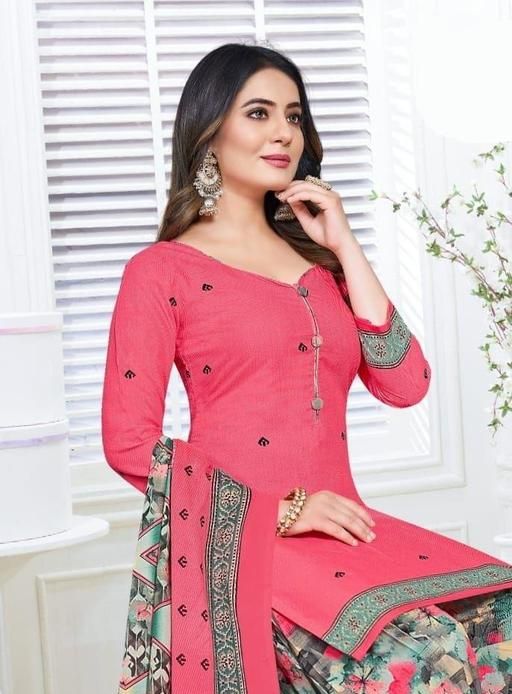 Trendy Suit look pretty like never before.Wearing this Pink Color Suit which made from Cotton with Multicolor Colored Cotton Salwar Bottom and Multicolor Colored Cotton Dupatta.Suit has also decorative work like Floral.This beautiful suit features a classy Printed Work all over,which makes it a smart pick for all occasions. You can wear this Suit in different styles. You can wear it occasionally or casually.