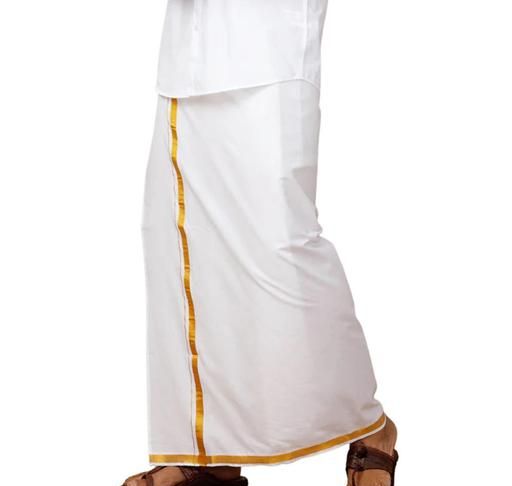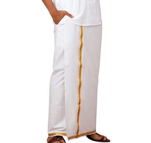 Name: Mens Cool Cotton Pocket Dhoti For Adults with Velgro Stiched and Jari border (Pack of 1)|Ottiko kattiko|Wedding wear|Party wear|2.00 meters| VELGRO DHOTI(MILKY WHITE-1)