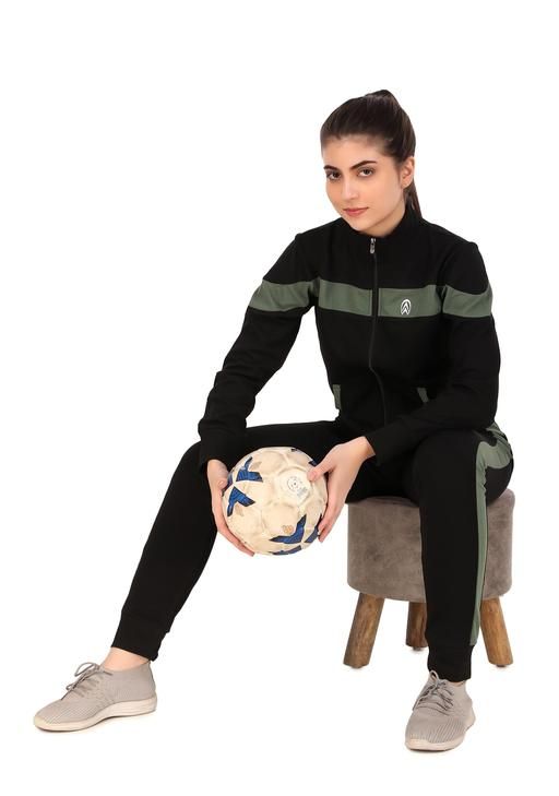 A women's tracksuit is a comfortable, stylish, and versatile outfit typically made from soft, stretchy fabrics like cotton blend. It includes a jacket and matching pants, designed for both athletic activities and casual wear. The jacket often features a zip-up front, adjustable cuffs, and a hood, while the pants are usually tapered or straight-leg with an elastic waistband for a snug yet flexible fit. Available in a wide range of colors, patterns, and designs, a tracksuit can offer a sporty, laid-back look that’s perfect for lounging, running errands, or hitting the gym.
