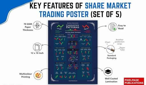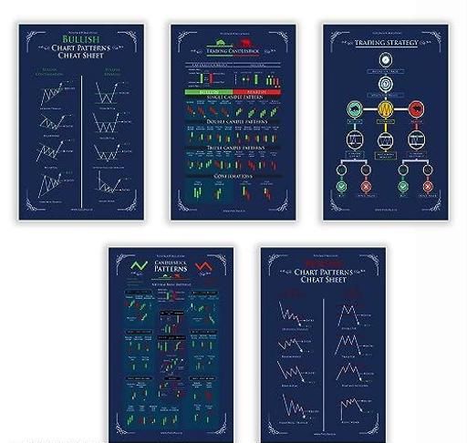 PIXELPAGE PUBLICATIONS Stock Market Trading Candlesticks & Classic Chart Poster | Stock market Trading Chart Pattern Poster For Trading Room Setup [ Pack of 5 ]