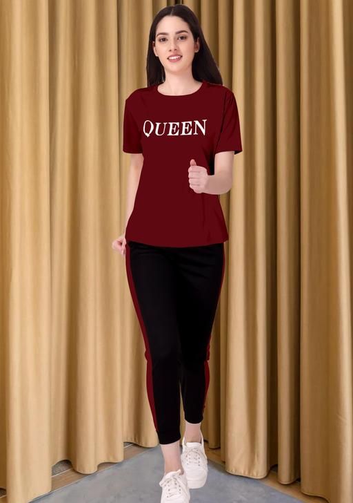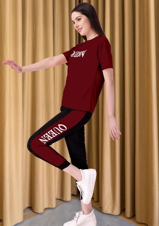 A Women S Track suit and night suit fabric is important lycra is very good fabric and Stretchable fabric women's tracksuit is a coordinated set of comfortable athletic clothing that typically includes a zip-up or pullover hoodie and matching pants. Made from materials like cotton, polyester, or blends, tracksuits often have a soft, stretchy feel for ease of movement. They're commonly worn for sports, workouts, or casual activities, offering both style and functionality. Design variations range from slim-fit to relaxed styles, and they come in a variety of colors and patterns to suit personal preferences . Summer Track Suits / Activewear / Yoga wear / Gymea / Sportswear / Womens Track Suit Printed and / track suit for women summer / new track suit / track suit girls / track suit trending / track t-shirt / track pant ..