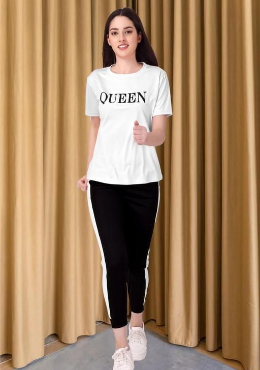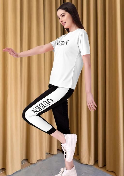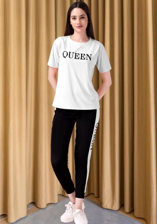 A Women S Track suit and night suit fabric is important lycra is very good fabric and Stretchable fabric women's tracksuit is a coordinated set of comfortable athletic clothing that typically includes a or pullover hoodie and matching pants. Made from materials like cotton, polyester, or blends, tracksuits often have a soft, stretchy feel for ease of movement. They're commonly worn for sports, workouts, or casual activities, offering both style and functionality. Design variations range from slim-fit to relaxed styles, and they come in a variety of colors and patterns to suit personal preferences . Summer Track Suits / Activewear / Yoga wear / Gymea / Sportswear / Womens Track Suit Printed and / track suit for women summer / new track suit / track suit girls / track suit trending / track t-shirt / track pant ..