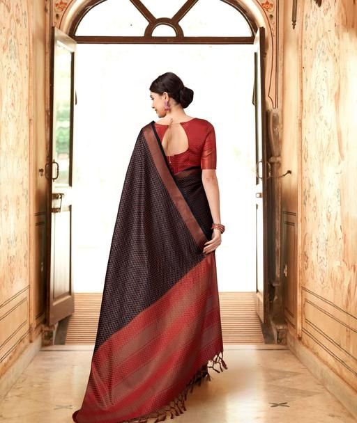 Name: Embellished, Woven, Dyed Mysore Cotton Silk Saree
