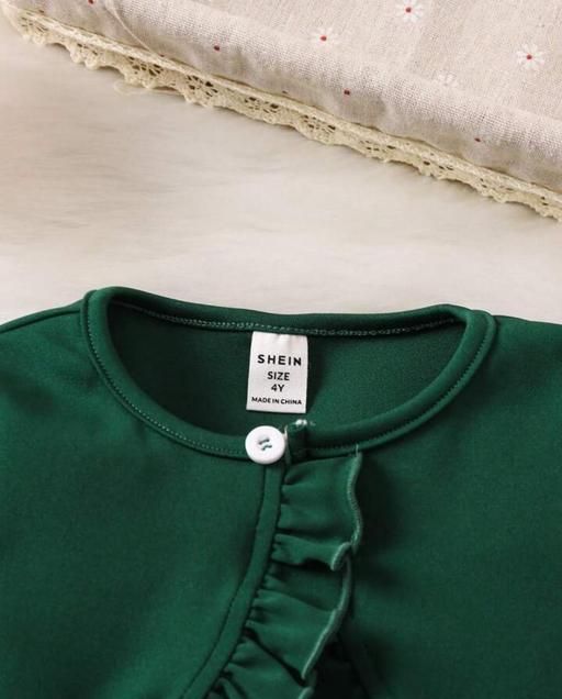 Name: Baby girls Ruffle Trim Jacket & Appliques Mesh Flare Hem Cami Dress | Tutu Skirt, Layered Tulle, Above Knee, Sleeveless, Round, A-Line, Tiered, Null, Embroidery, Partywear, Tutu Dress, for Girls Green, White