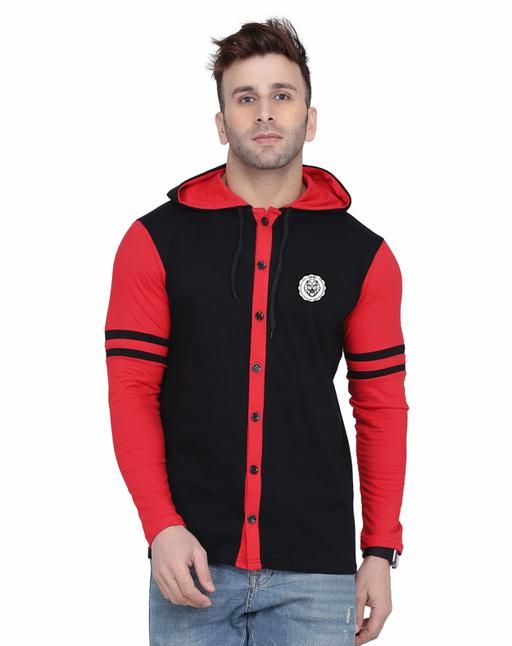 Name: Men’s Black Hooded Neck Multicolor Shirt | Red Long Sleeve Casual Wear (S to XL)