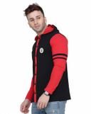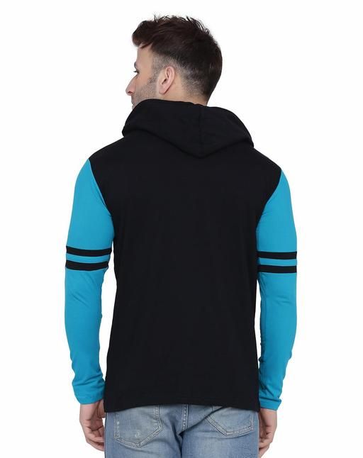 Men's Black Hooded Shirt with Blue Sleeve | Stylish & Casual Wear (S to XL)