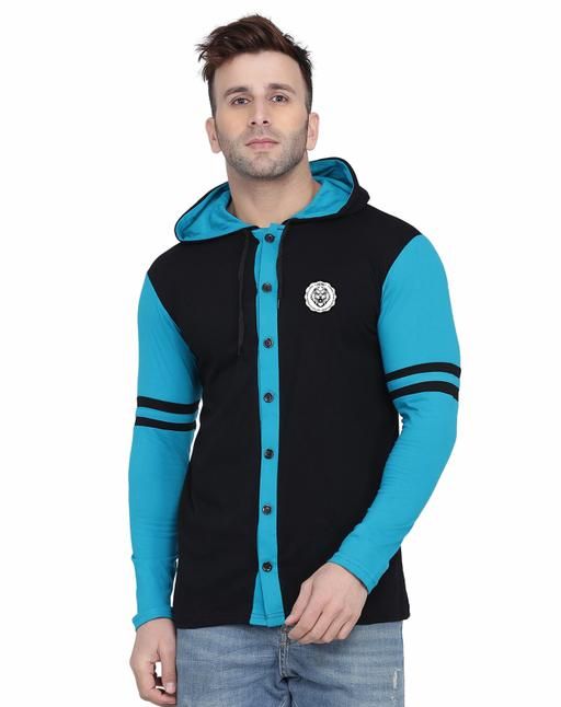 Name: Men's Black Hooded Shirt with Blue Sleeve | Stylish & Casual Wear (S to XL)