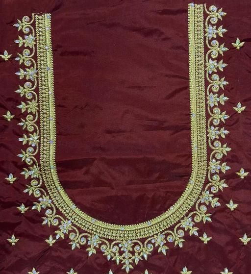 comfy maroon blouse piece | Embroidery Work Blouse Piece|south style blouse(Un-stitched)