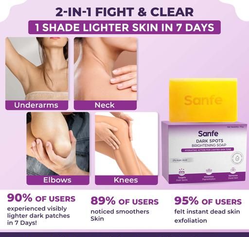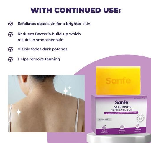 Product Name: Sanfe Dark Spots Brightening Syndet Soap| Prevents Blemishes| 75gm