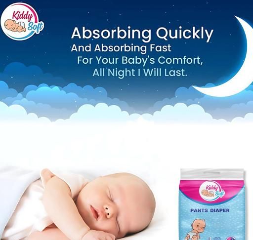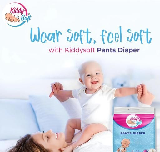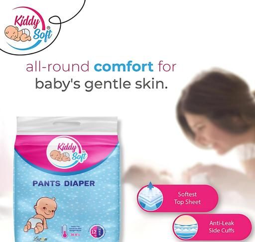 Introducing KiddySoft Baby Diaper Pants – the ultimate in premium comfort and protection for up to 12 hours. Our diapers feature Anti-Leak Gel Technology, ensuring dryness, reducing diaper rash, and promoting a good night's sleep. Easy to put on and take off, with a playful design, these diapers prioritize your baby's comfort. The ultra-absorbent core and crisscross top layer keep your baby dry and comfortable, allowing them to focus on learning and play without irritation. Choose KiddySoft for hassle-free diaper changes and the best for your baby.