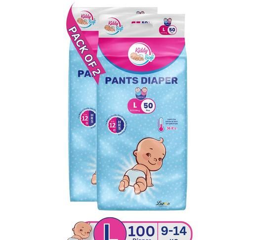 Product Name: KiddySoft Baby Diaper Pants | L | (9-14 Kg) | Pack of 2 | 50 Pieces | Anti-Lock Gel Technology | Upto 12 hours Protection