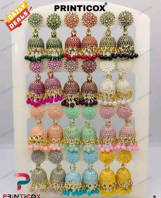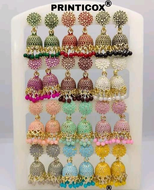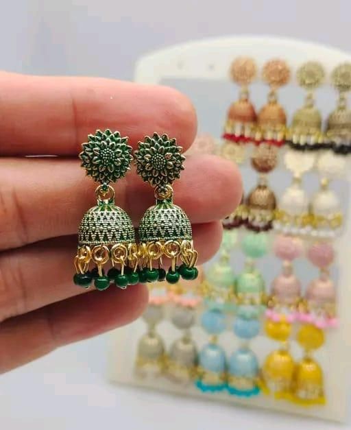Name: Earrings Jhumkhi New Fancy Oxidize Small Jhumkhi Earrings For Women& Girls (Combo Of 12 Color) In Color Green, Red, Black, Pink, Maroon, White, Peach, Pista, Baby Pink, Grey, Aqua, Yellow