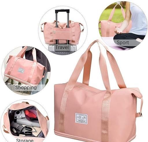 Large capacity folding travel bag made with lightweight waterproof and tear resistant Polyester fabric, solid, durable and strong enough to carry. It is enough for short trips and can easily accommodate 3-5 days of travel clothes.
