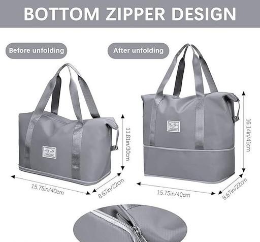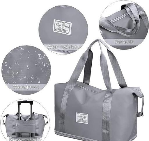 Large capacity folding travel bag made with lightweight waterproof and tear resistant Polyester fabric, solid, durable and strong enough to carry. It is enough for short trips and can easily accommodate 3-5 days of travel clothes.
