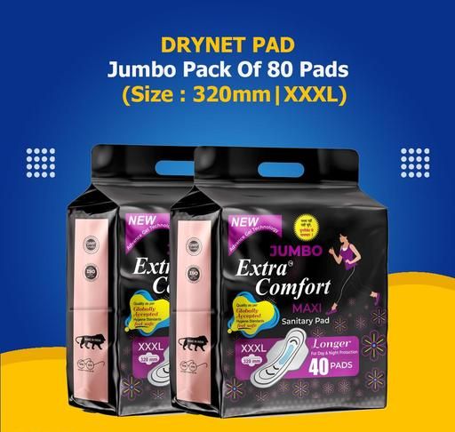 Name: Jumbo Extra Comfort Large Day and Night Protection leakage Free Dry Net (XXXL) Sanitary Pads (Combo of 2 Packets) (Total 80 Pads) Sanitary Napkin