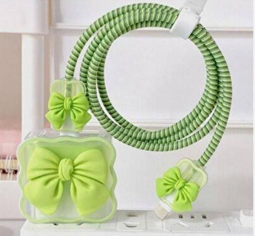 Name: 3D Cute Heart Pattern for i Phone Charger only 18W & 20W, Data Line Wire Saver Charging Cable Charger Protective Cable,Full Protection Cover 5 in 1- Purple-Bow