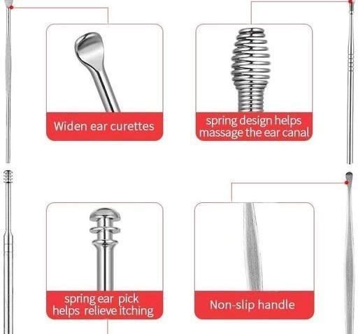 Includes a tool with a unique spring and spoon design, that can effectively relieve itching and massage the ear canal while cleaning. It is kid friendly because of its ergonomic design ,easy to control and more safe to use.