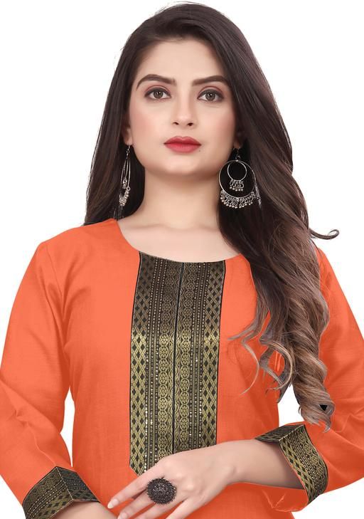 Name: Elegant Orange Zari Kurtis – Trendy & Comfortable Cotton with Embroidered Designs for Every Occasion