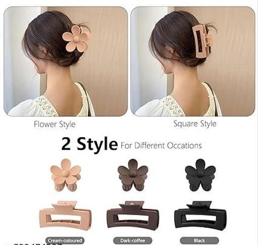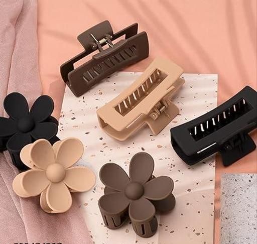 Product Name: TR CREATION 4 Pack 4.1 Inche Large Rectangle Hair Claw Clips Matte Flower Hair Clips, for Women Thin Thick Curly Hair, Neutral Colors