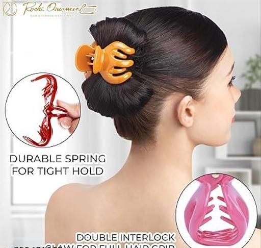 Product Name: TR CREATION 6 Pcs Womens Hair Pumpkin Interlocking Teeth No Slip Secure Grip Strong Solid Ladies Beauty Accessory Classic Clamp Jaw Claw Clip, Large Classic Multicolor