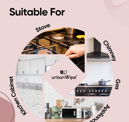 From the greasy build-up on your chimney and exhaust fan to oily surfaces, plastic containers, wooden shelves, limescale on taps, gas stoves, and even granite slabs, UrbanWipe ensures that no corner of your kitchen goes untouched. It effortlessly cuts through the toughest kitchen grime, leaving everything looking fresh and clean.