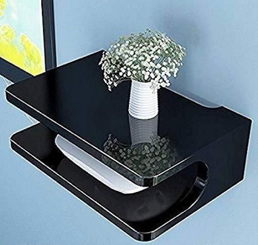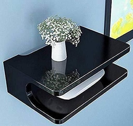 Set Top Box Stand Wall Mounted Shelf Racks Aero TV unit shelf from is a perfect wall mounted entertainment center for your living room which adds a touch of elegance and sophistication to your decor theme to make your home classy and stylish. Specifically sized wood-chips are used in making the board, bound by synthetic resin pressed under heat and pressure. The boards produced are denser and more uniform in their constitution as compared to plywood or general wood. This engineered wood is sourced from reputed manufacturers like Associate. FEATURES Perfect wall mounted entertainment center for your living room. Fits in any wall to give enough storage space. Premium MDF is used with shine Finish. Adds a touch of elegance and sophistication to your decor theme. Wipe it with a piece of mildly wet cloth only. Color: white Easy To Hang Usage, Maintenance and care This is a multifunctional wall-mounted TV shelf unit that can be used on any wall big TV sizes also. The shelf unit is finished in colorful paint This product can be cleaned with a damp soapy cloth and wiped dry. This is recommended only for indoor use only. Do not scratch with a sharp object.