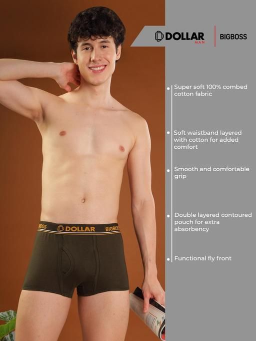 Name: Men's Pack of 3 Combed Cotton Double Pouch Support Solid Trunk (Colour May Vary)