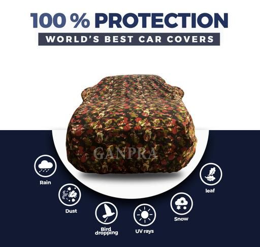 GANPRA Semi Waterproof Car cover is made of the 190T Polyester fabric which is superior Quality fabric when it comes to Water-Resistant, UV Sun light Protective car body cover.It is not 100% Waterproof.The car cover has mirror pockets slots for proper fitting & Belt Buckle for Grip During Heavy winds & Opposite Climate.The Fabric is Dust Protective which is common problem for car owners during normal days Dirty climate days & Rainy Season days.It is also Scratch Resistant Fabric which doesn't harm any coating of your car body.During Parking this cover is all around protector of your car from Dust & Scratches.This cover is Handful,Easy to use & Long Durable Material.It comes in diiferent colors of the same Fabric you can choose accordingly.