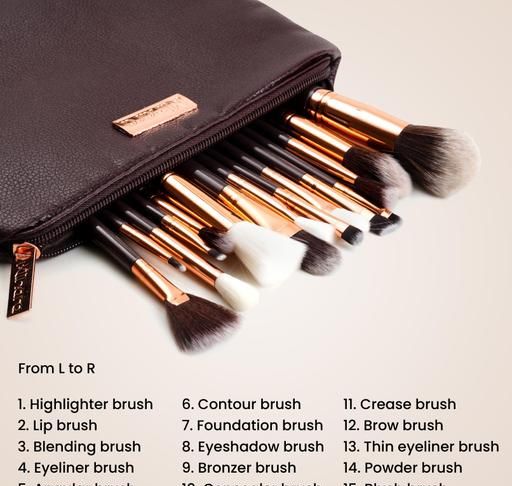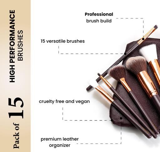 Name: Professional Makeup Brush Applicator Set of 15pcs with Premium Leather Pouch (Brown Colour)