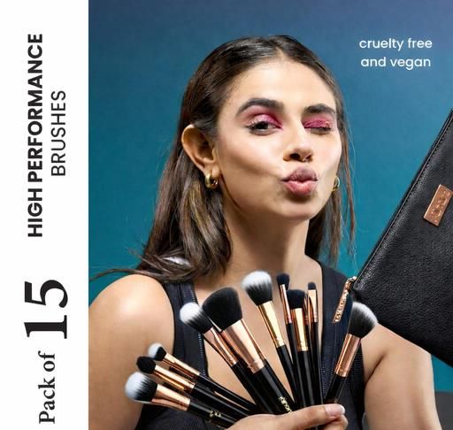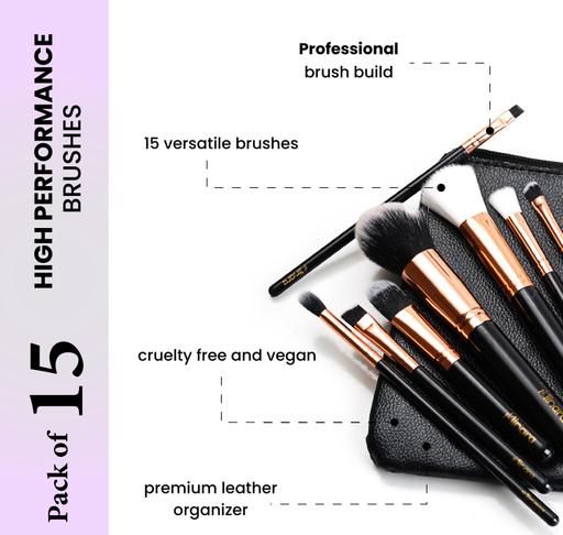 Professional Makeup Brush Applicator Set of 15pcs with Premium Leather Pouch (Black Colour)