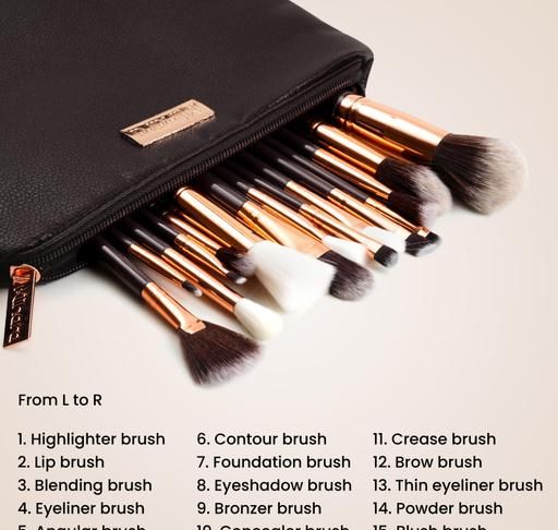 Name: Professional Makeup Brush Applicator Set of 15pcs with Premium Leather Pouch (Black Colour)