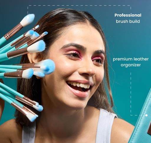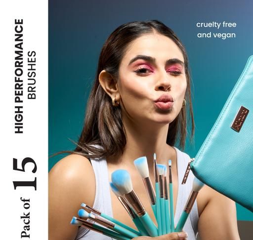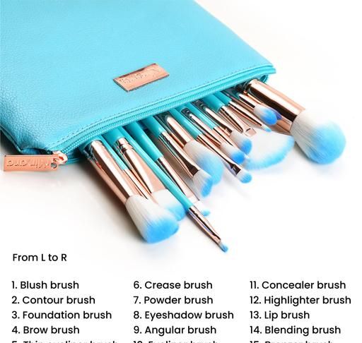 Name: Professional Makeup Brush Applicator Set of 15pcs with Premium Leather Pouch (Blue Colour)