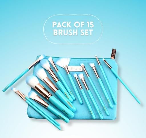 Professional Makeup Brush Applicator Set of 15pcs with Premium Leather Pouch (Blue Colour)