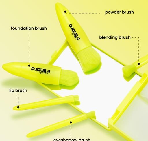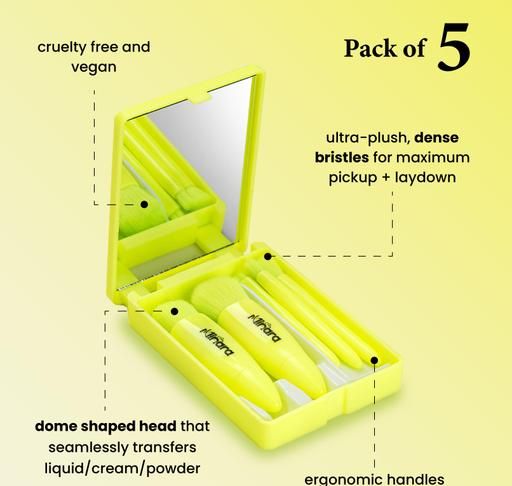 Brushes included - Foundation Brush, Eyeshadow Brush, Blush Brush, Concealer Brush and Lip Brush.